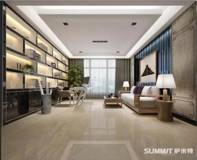 新中式书房在表现传统与现代之美的同时,也可以从中窥探出主人的修养与品位,不经意间,茶香墨韵在瓷砖与软装的碰撞中四溢。